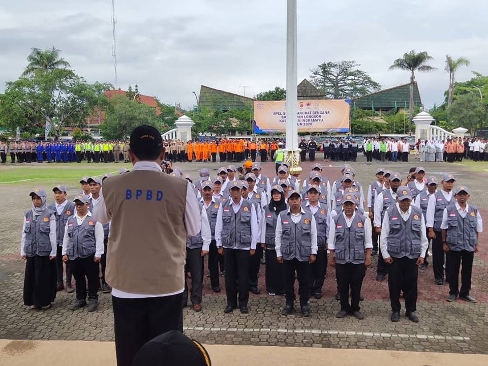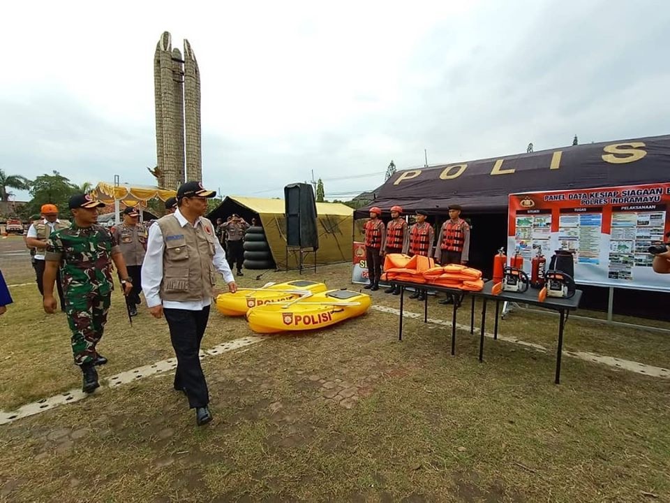 Apel Pasukan dan Peralatan Siaga Darurat Bencana dimpimpin oleh Pelaksana Tugas (Plt) Bupati Indramayu Taufik Hidayat. Hadir dalam acara tersebut Forum Koordinasi Pimpinan Daerah (Forkopimda) dari usur Badan Penanggulangan Bencana Daerah (BPBD), Polres Indramayu, Kejaksaan Negeri Indramayu, KODIM 0616 Indramayu, Relawan Tanggap Bencana serta berbagai unsur masyarakat lainnya hingga berjumlah 1.500 orang.
